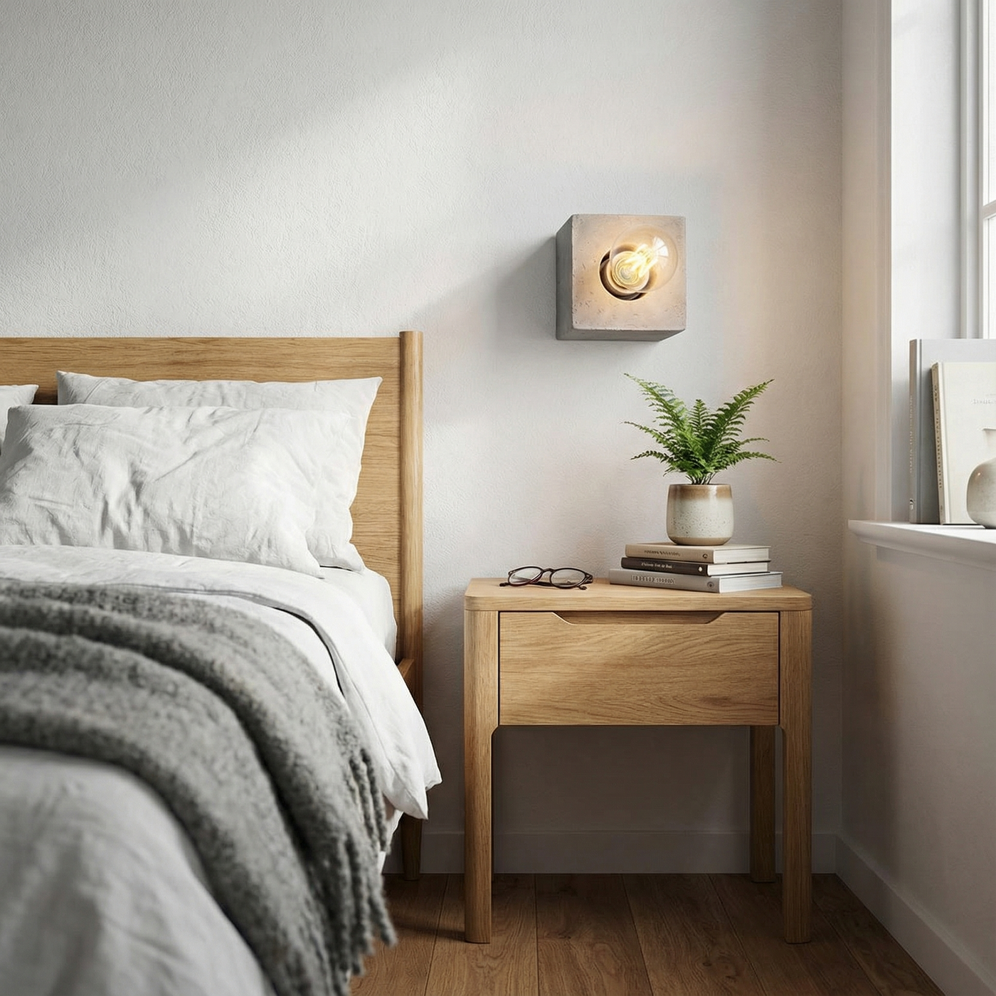 Minimalistische graue Beton-Wandleuchte – Modell Arkanor