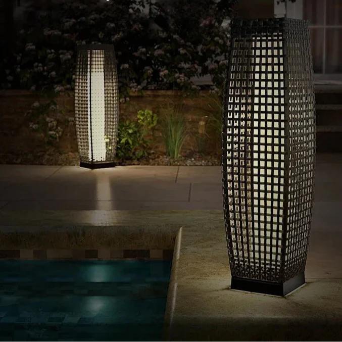 Outdoor Floor Lamp in Solar Imitated Rattan – Orbanya