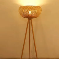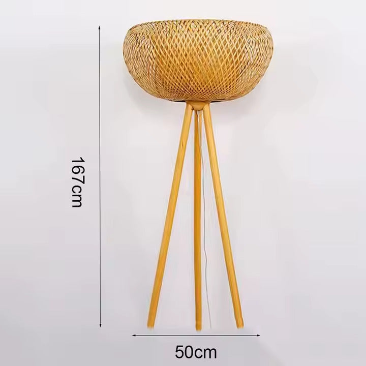 Rattan and black metal floor lamp for living room – Rotanique